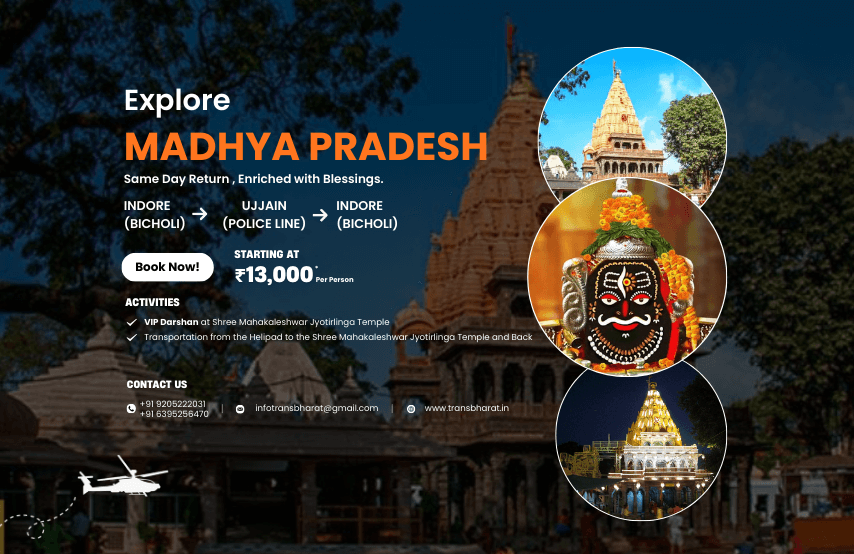 - Exclusive same-day helicopter journey from Indore to Ujjain and back.